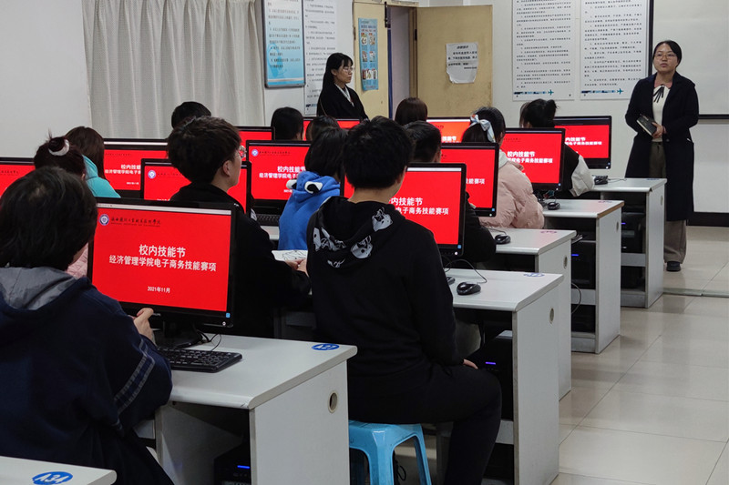 2021-2022学年校园技能节“电子商务技能”赛项于11月11日在我校经济管理学院顺利开幕,分院副院长王珊珊,赛项裁判长黄志宏教授、赛项指导教师和16支队伍参加了开幕式。