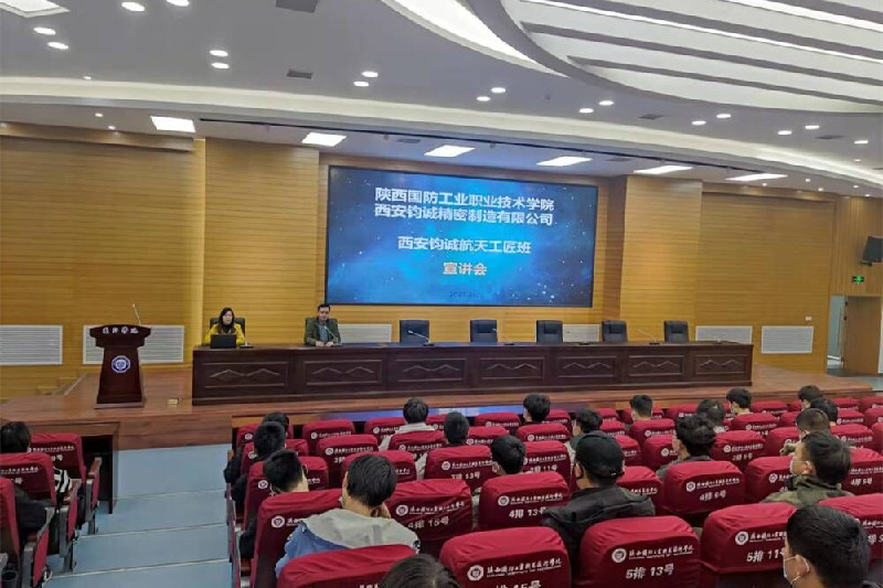首先,郭力介绍了西安钧诚精密有限公司的基本情况及与我校开展合作的相关情况,对此次西安钧诚航天工匠班的培养模式、后续安排进行了说明,又从人生规划、职业发展、就业选择等方面对学院机设专业320级同学进行了动员。随后,钧诚公司招聘主管班亚丽详细介绍了企业的生产办公环境、设备及产品类型、技术团队、薪酬福利及职业发展等。
