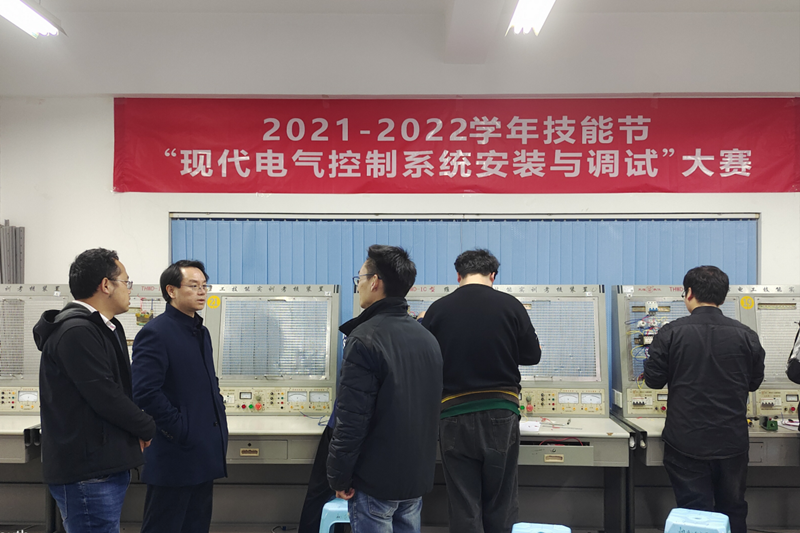 为积极营造学技能、练技能、赛技能、爱技能的良好氛围,提高学生专业技能,推进“以赛促学,以赛促教,以赛促改,以赛促建”综合育人方针,传承工匠劳模精神,不断提升学生专业综合技能水平,促进学校教育教学改革。2021年11月19日,人工智能学院成功举办了2021-2022学年校园技能节“现代电气控制系统安装与调试”“智能供配电技术”“物联网技术应用”和“人工智能训练师”四个赛项比赛。本次技能节由校企合作处主办,人工智能学院承办,共历时两个月时间。学校对比赛高度重视,校企合作处张俊勇处长亲临比赛现场,勉励参赛选手赛出成绩、比出风格。