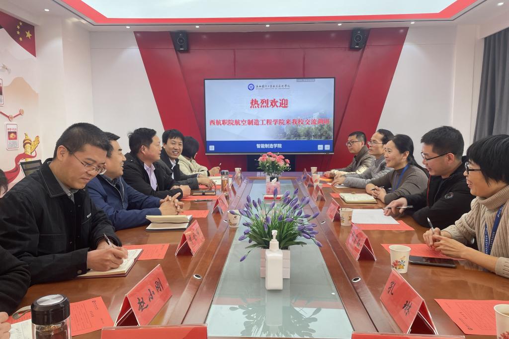 11月26日,西安航空职业技术学院航空制造工程学院院长冯娟一行6人来我校开展调研并交流座谈。智能制造学院院长李俊涛、党总支书记白福民、副院长张晨亮以及办公室主任、教研室主任等热情接待了友校的到访。