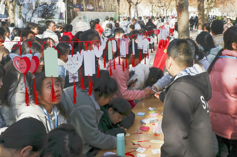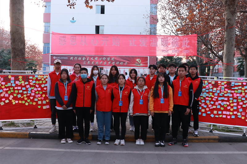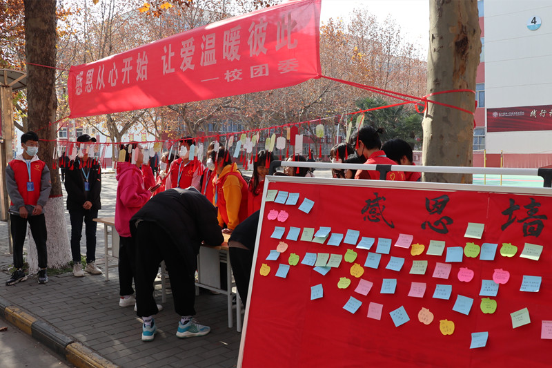 感恩,是中华民族的传统美德,是构建社会主义和谐社会的基础。为了感恩那些我们生命中的点滴,以感恩为主题,校团委于11月25日在教二西侧弘毅路开展“感恩从心开始,让爱温暖彼此”活动。为全校师生提供一个平台,将自己心中的感恩之情通过书写表达出来,营造“爱”的氛围,开展“爱”的教育!