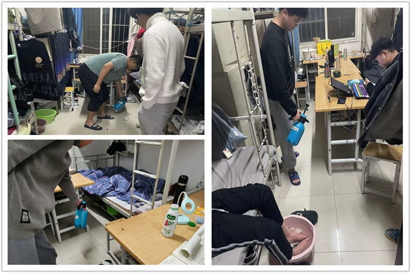 办实事做好事,寝室消毒我先行。为做好出血热防治工作,保证学生寝室环境卫生安全,为同学们营造舒适、安全的生活环境。基础课部同学以实际行动贯彻党中央“学党史、悟思想、办实事、开新局”的重要精神,每晚为同学宿舍消毒,对学生宿舍地面及走廊等区域进行消毒。基础课学生党支部也将继续发挥党员先锋模范作用,坚持服务理念,严格落实宿舍卫生要求,保障学生的健康和安全,奋力将党史学习教育成果转化到为同学办实事的行动中去。