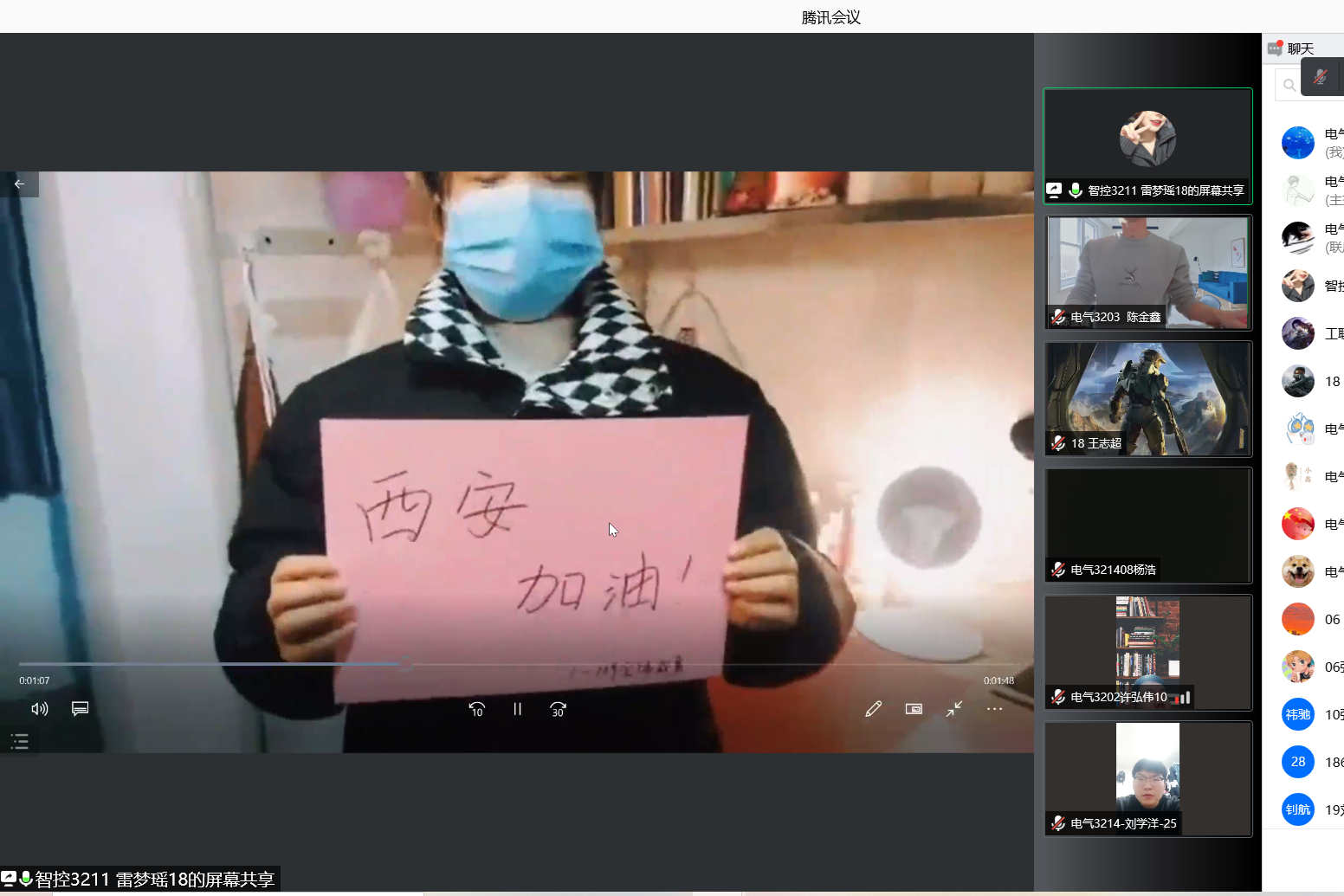 最后活动以志愿者们的祝福寄语小视频为结束,呼吁“水滴石穿非一日之功。”在这个特殊的时期,我们必将万众同心,共克时艰,国防学子们将共同聚力,用自己的行动为西安加油,我们将共同筑起一道坚实的“防疫线”,期待战胜疫情的那一天。
