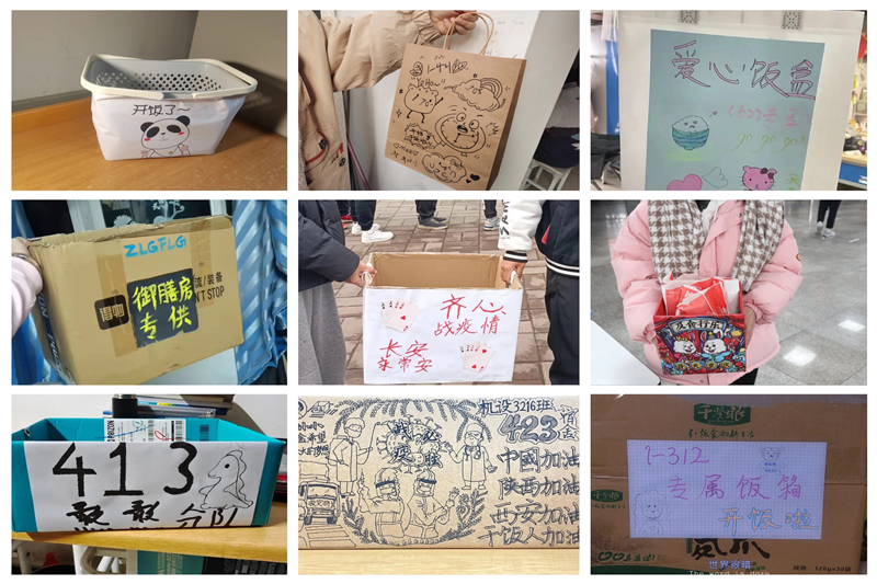 为应对新冠疫情防控的严峻形势,确保全校师生生命健康安全,我校进一步加强疫情防控期间校园管理各项工作,学生分时段持证购餐,暂停堂食。同学们制作出花样繁多的“带饭神器”,展现了乐观的生活态度。