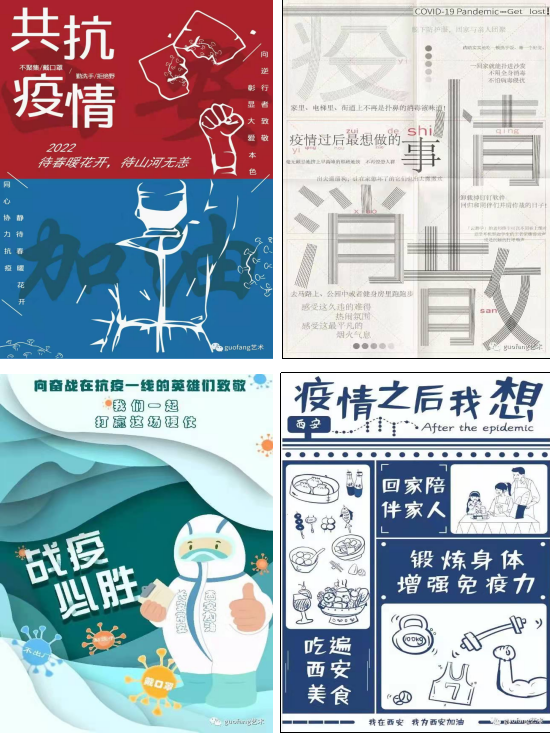 截至目前,分院已完成《设计素描》《大学生艺术鉴赏与实践》《3Ds MAX室内效果图设计与制作》等六门课程线上展览。在《海报与招贴设计》课上,分院教师李媛通过分享抗疫一线典型事迹,赏析优秀“抗疫”主题公益类海报案例,引导学生感悟生命至上、举国同心、舍生忘死、尊重科学、命运与共的伟大抗疫精神和团结一心、众志成城、无坚不摧的中国力量,指导学生创作“同心抗疫 共卫西安”主题公益海报,号召国防学子主动担当,以“艺”抗“疫”,助力打赢疫情防控阻击战!