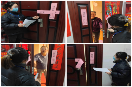 【敲门行动】 “您好,请问家里人核酸都做了吗?有需要医护上门核酸的吗?”“大爷,感谢您的配合,最近没有什么重要事情我们就尽量不外出啦,有啥需要可以给我们社区打电话!”“您最近生活上有什么困难吗?” ……在“严”字当头的疫情防控主基调下,为做好核酸筛查、保障物资供应、解决居民实际困难, 1月4日,我们在家属院开展了“敲门行动”,力争做到“不落一户、不漏一人”,全力织密扎牢疫情防控防线,切实做好社区居民日常生活保障工作。