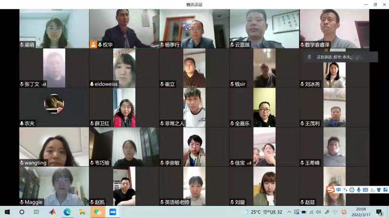会议第一阶段,权华汇报了2021年基础课党总支各项工作,并带头做了批评和自我批评,领学了习近平总书记“七一”重要讲话、关于教育的重要论述以及来陕考察重要讲话重要指示精神; 领学了党的十九届六中全会精神和省委十三届十次全会精神;领学了中央和省委关于疫情防控的安排部署。权华要求各支部根据学院疫情防控要求,精心组织开展线上生活会,认真学习相关文件,通过多种形式开展谈心谈话,认真查摆问题,形成党支部和党员问题清单,组织开展批评和自我批评,认真用好民主评议结果。