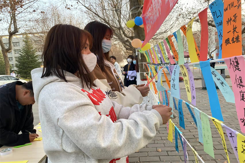 活动期间,国防女生们纷纷在活动现场领取彩色心愿卡片,手写心愿后将专属心愿卡片亲手挂在心愿树上,一张张心愿卡片上记录了女生们的小小愿望,她们有的“希望能交到新朋友”,有的“希望能坚持每日锻炼身体”,有的“希望家人身体健康”,有的“希望自己求职顺利”。五彩斑斓的心愿卡片吸引了同学们的驻足停留,微风拂过,卡片轻舞,为春日明媚阳光下的校园增添了一抹不可多得的风景线。