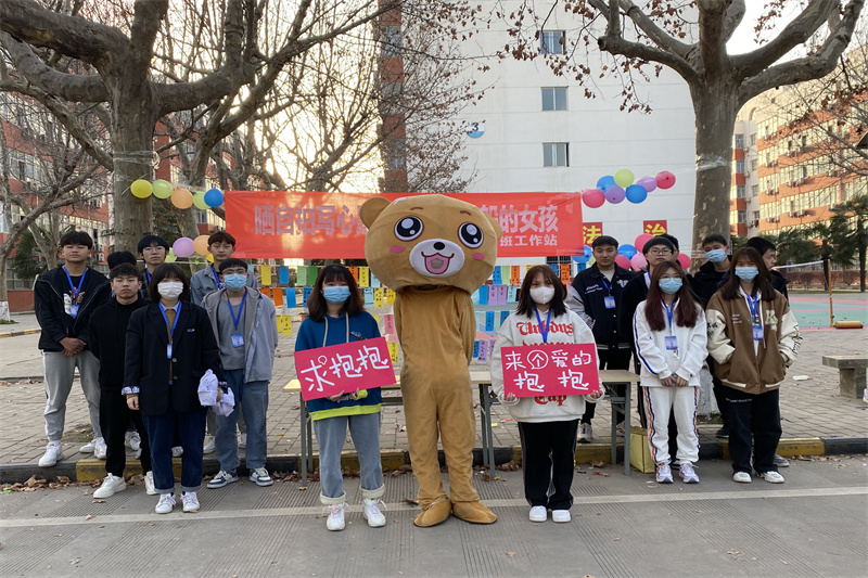 在心愿卡片环节顺利进行的同时,一旁易班熊“爱的抱抱”环节也在火热进行中,易班熊作为易班发展中心的“代言人”受到国防女生们的喜爱,女生们纷纷上前和易班熊互动,活动现场瞬时热闹了起来。