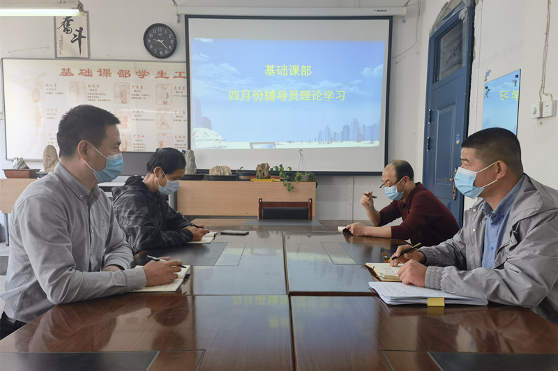 【基础课部】根据陕国职学工字〔2022〕21号文件《关于开展四月份辅导员理论学习的通知》要求,基础课部于2022年4月27日上午在南校区教1-313办公室开展4月份辅导员理论学习,此次学习会有基础课部学生科长余腾飞主持,基础课党总支书记权华和全体辅导员参加学习。