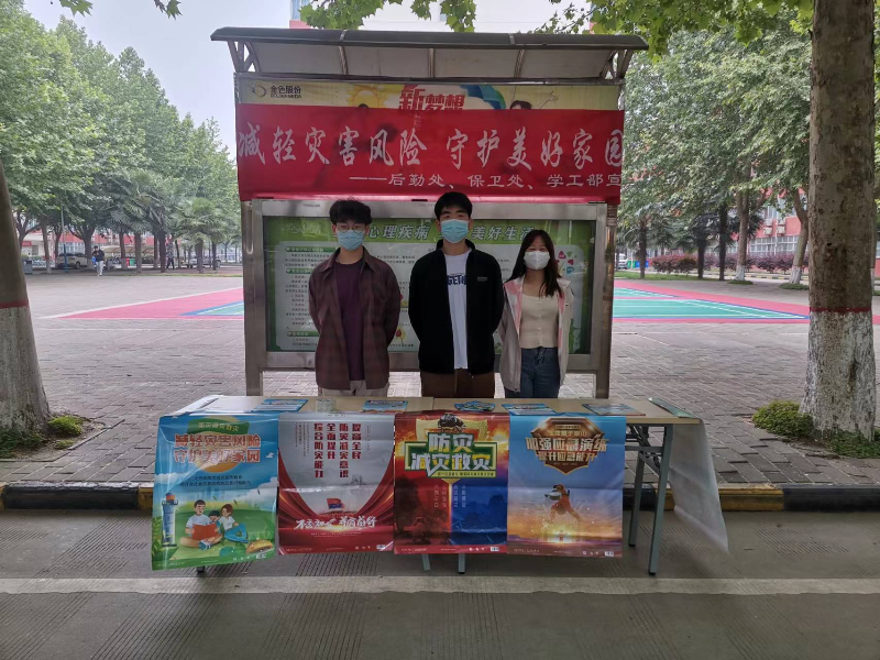 为切实保障广大师生人身和财产安全,增强灾害风险防范意识和能力,最大限度地减轻灾害造成的损失,维护校园安全稳定。按照《中共陕西省委教育工委办公室关于做好2022年全省教育系统防灾减灾救灾工作的通知》要求,5月12日,学校后勤处、保卫处、学工部联合组织开展了防灾减灾安全知识宣传活动。