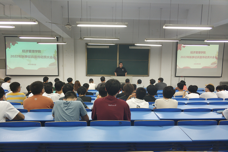 为认真贯彻习近平总书记关于加强和改进兵役工作的重要指示精神,加强我校学生对参军入伍政策的了解,激发大学生应征入伍的积极性,鼓励更多大学生应征入伍,2022年6月13日下午,经济管理学生开展了2022年秋季征兵宣传动员大会。