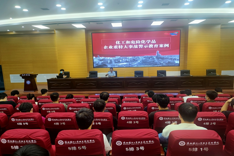 李斌详细介绍了“校企联合培养”教学模式的目的、意义及要求,动员同学们积极应聘,并为同学们做了安全生产教育。他指出:安全是一种态度,对待安全问题绝不能心存侥幸,阳奉阴违。始终要牢记,一个小小的差错就是巨大的隐患;一个小小的疏忽,就能导致严重的生产事故;一个小小的闪失,就能让自己的生命处于险境。我们始终要坚持“安全第一”的思想,做到严、勤、细、实,严格按安全规程办事,对安全生产的每一个环节都要检查到位,不漏过一个疑点,不放过一个死角,不疏忽一个细节,消除隐患,避免事故的发生。李斌对同学们提出了四点要求:一是安全,要时刻谨记安全的重要性,企业实践学习期间要严格按照企业的操作流程,做到安全生产;二是规范,要严格遵守生产纪律,按照学校和企业的要求进行实习;三是慎重,要对未来的实习和就业有一个清晰的职业生涯规划,确定自己的职业方向和就业意向,不盲从,不跟风;四是交流,生产实习期间与指导老师、企业师傅、班主任多交流,多沟通。最后,同学们集体观看了安全教育视频——《化工和危险化学品企业事故警示教育案例》。