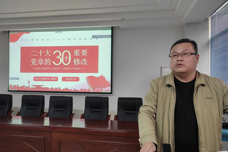 11月17日下午,必威app安卓版无弹窗党委召开专题学习暨书记讲授专题党课会议,采用“线上+线下”相结合的方式,线下在北校区图书馆四楼招就处宣讲厅集中学习,王东同志主持会议。