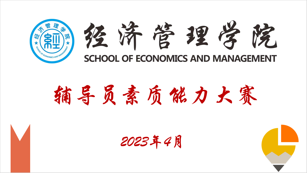 为不断提高经济管理学院辅导员队伍理论水平和专业素养,加强辅导员队伍的专业化、职业化建设,同时也给辅导员提供一个学习、交流、展示的平台,经济管理学院于2023年3月-4月举办学院辅导员素质能力大赛。