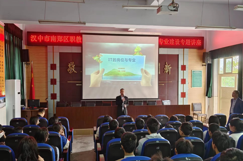 首先,王洪波为南郑区职教中心190名师生开展了“IT的岗位与专业”的精彩报告,报告深入浅出的讲解了信息技术类专业的岗位与高职专业的对应关系,并现场与学生进行互动现场气氛热烈。