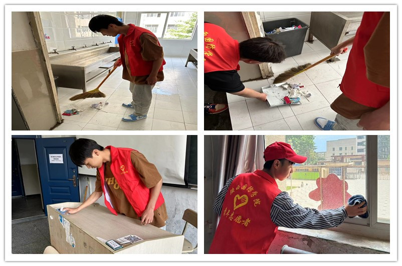 同学们经过简单的分工,各自承担起擦桌子、扫地、倒垃圾等工作,同学们干劲十足,充分展现了不怕脏、不怕苦、不怕累,敢于冲在前面、敢于抢挑重担的精神风貌。他们有的用扫帚清扫路面,有的忙着把垃圾从犄角旮旯中捡出来扔进垃圾箱,大家热情高涨,以劳动为荣,乐在其中。校园的卫生死角、绿化带等地段在大家的共同努力下变得整洁舒适、焕然一新。通过此次志愿服务培养了大学生服务社会的理念,持续推动习近平新时代中国特色社会主义思想入脑入心,为服务师生、为学校发展贡献力量。