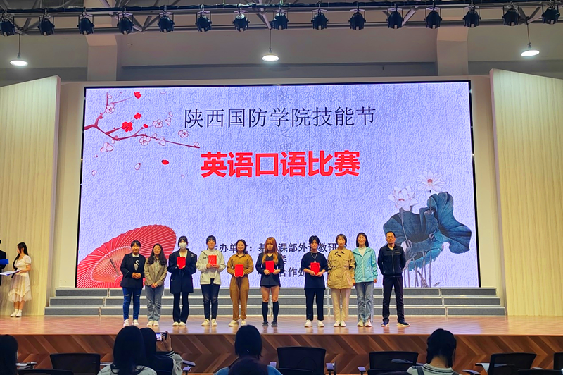 为树立文化自信,培养广大学子的爱国情怀,基础课部于5月25日在博远楼四楼“小剧场”举办陕西国防学院技能节英语口语大赛。本次大赛由基础课部外语教研室主办,外语教研室英语教师担任评委,以“用英语讲好中国故事”为主题,鼓励学生用英语传播中国文化,丰富校园文化生活,积极响应“技能-让生活更美好”职教周活动主题。