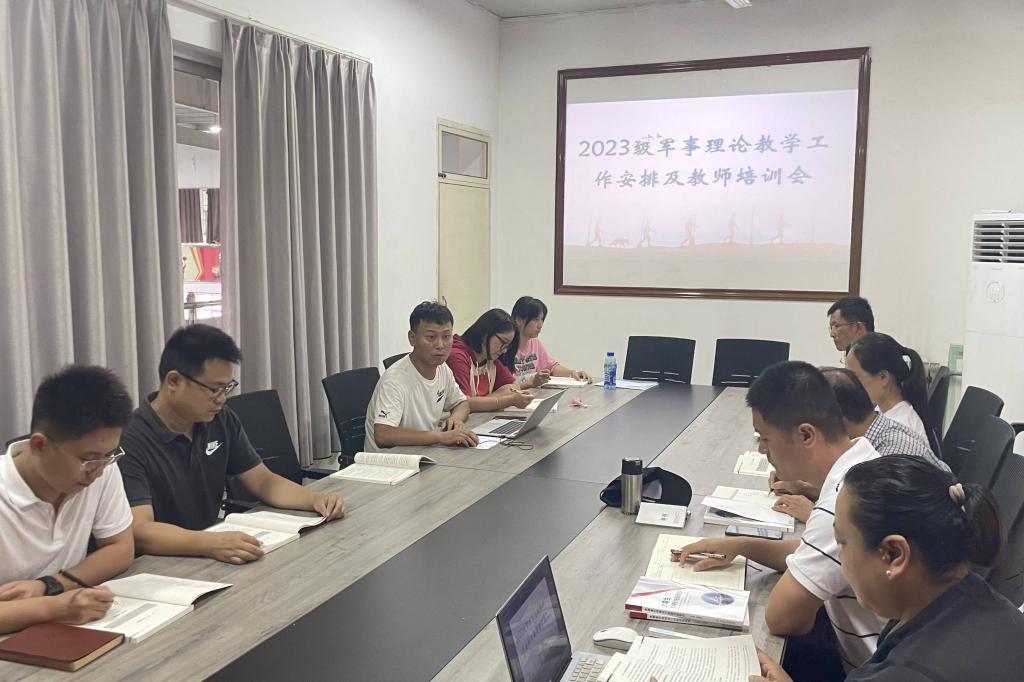 根据学院安排,将于9月开展新生入学教育工作及新生军训。为确保我校新生入学教育与军事理论课的效果,增强教育内容的规范性、科学性,9月4日下午军事体育部教师万肖对全体军事理论课教师进行了课前培训会议。