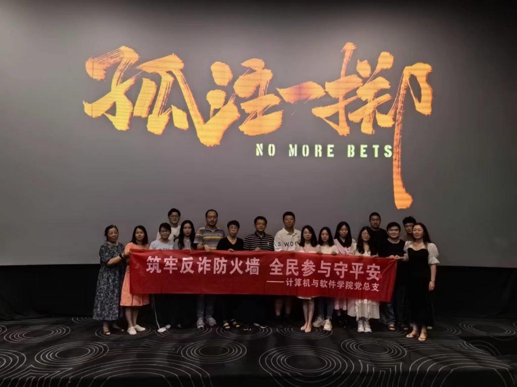 时刻紧绷防范之弦,严防电信诈骗之害。为进一步营造“人人参与、人人宣传”的“全员反诈”浓厚氛围,增强师生识诈、防诈、反诈能力,9月3月,计算机与软件学院党总支组织教职工集中观看反诈主题电影《孤注一掷》。