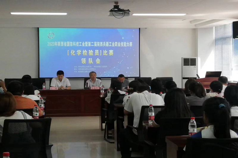 2023年9月8日下午,2023年省陕西国防科技工业职业技能大赛暨第二届陕西兵器职业技能大赛“化学检验员”项目决赛领队会在我校召开。来自中国兵器工业、中国航天科技、西北有色等系统的11支代表队领队、技术指导和选手参加了本次会议。陕西兵器工业工会副主任朱晓明,西安近代化学研究所工会副主席梁雪斌,国家级技能大师工作室领衔人王明,我校化学工程学院院长张军科出席了本次会议。