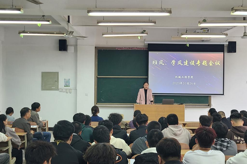10月26日下午,机械工程学院举行了班风、学风建设专题会议。机械工程学院院长修学强,二级学院学生、教学管理人员,实训中心、教研室主任、全体专兼职辅导员,各班级班委代表等参加了会议。会议由机械工程学院党总支书记刘绪民主持。