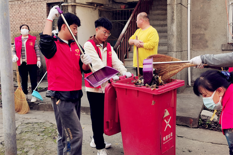 此次活动旨在为深化垃圾分类政策落实落地,提高社区居民自觉进行生活垃圾分类的低碳环保意识。活动中,志愿者们不仅参与了社区组织的生活垃圾分类线上答题,还向社区居民发放生活垃圾分类宣传单。身穿红马甲的志愿者们沿着小区主干道,挥动手中的笤帚,打扫落叶,捡拾垃圾,有条不絮地开展社区卫生整治工作,大家都非常积极的参与其中,在清理过程中,也不放过任何一处垃圾死角。不怕脏,不怕累,最终在大家齐心协力的劳动中,利用一上午的时间将小区内积存垃圾捡拾清理干净。他们用实际行动为仪表厂社区垃圾分类宣传活动贡献青年力量。