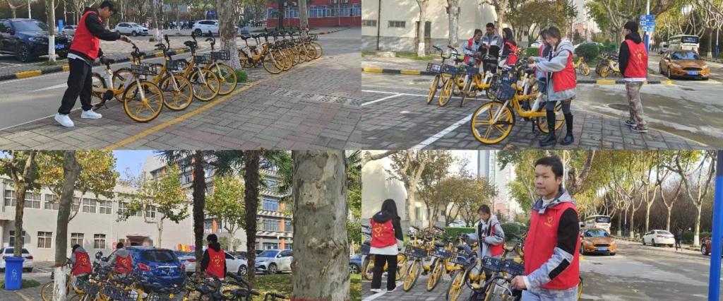 为了保障校园安全,提高同学们规范摆放共享单车的意识,智能制造学院志愿者小队于2023年11月8日上午在校园内进行“违规摆放危险大,安全规范记心间”志愿服务活动。