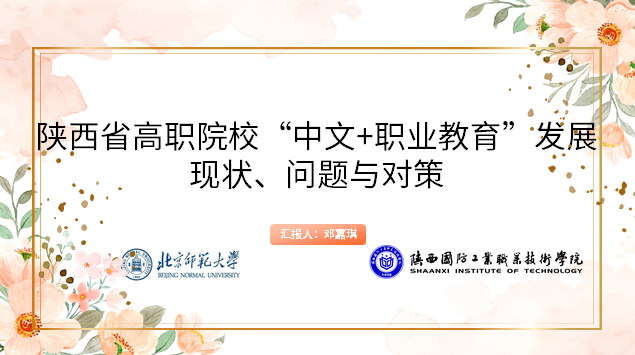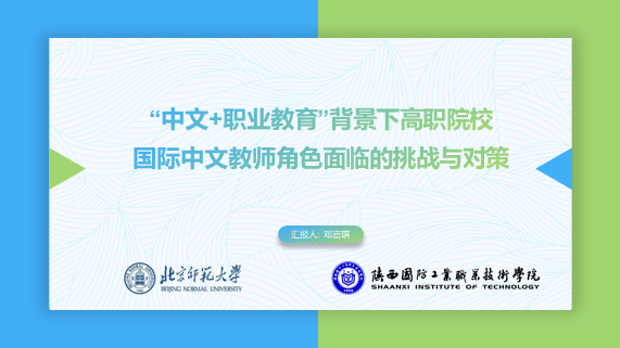 12月10日,在北京语言大学主办的第四届来华留学生高峰论坛上,邓嘉琪老师以陕西省8所“双高”院校为例,汇报了题为“高职院校“中文+职业教育”发展现状、问题与对策”的主题报告。陕西省作为我国教育大省和丝绸之路的起点,吸引了诸多“一带一路”沿线国家中文学习者的目光,教育主管部门应该加强顶层设计,进而推动高职院校“中文+职业教育”人才培养成效。