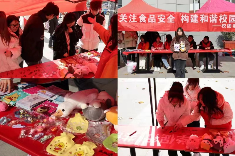 为深入实施健康中国战略,帮助大学生养成饮食健康安全习惯,引导同学们对食品安全与营养健康理念的理解与践行,11月28日,校团委在博远楼前广场组织开展了以“关注食品安全,构建和谐校园”为主题的食品安全宣传进校园活动。