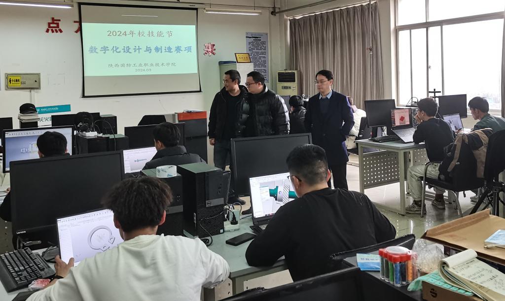 我校2024年技能节于3月相继开展,由智能制造学院承办的“数字化设计与制造”赛项于3月5日在8-608实验室举办。校企合作处张俊勇处长,智能制造学院数控教研室主任赵小刚莅临现场巡视。比赛中,选手们展现了出色的技术技能水平,营造了劳动光荣、技能宝贵、积极进取的浓厚比赛氛围。
