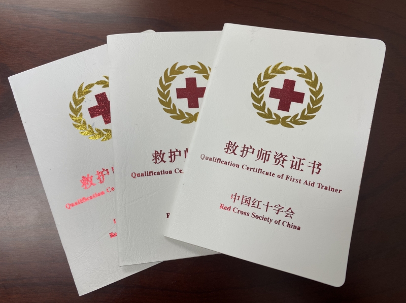 5月19日至5月26日,我校赵茹、刘婷、王倩3名教师在陕西省红十字会经过为期7天的脱产学习,均通过了理论授课、模拟操作演练、理论实操考核、教学试讲等多个模块的考核。均获得《中国红十字会救护师资证书》,取得应急救护培训授课资质。