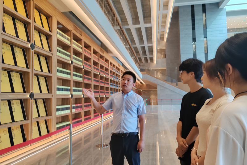在参观西安国家版本馆过程中,团队指导教师陈小刚副教授为同学们现场讲授了陕西优秀传统文化、红色革命文化和地方特色文化的主要内涵,着力打造“行走的思政课”。通过挖掘场馆中的思政资源,让社会实践深度融入“大思政课”,提高“大思政课”的吸引力、感染力。