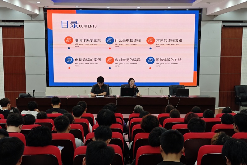 为提高同学们的法律意识和自我保护能力,防止电信诈骗案件的发生。建筑工程学院与西安市鄠邑区人民法院于2024年9月13日下午于教二报告厅联合开展了以“预防电信诈骗,守护平安校园”为主题的普法教育活动。