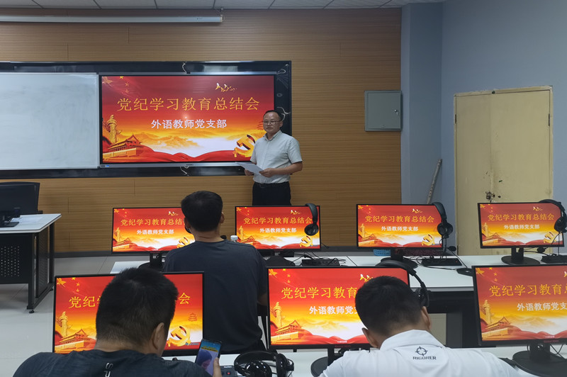 2024年9月24日下午,基础课党总支在北区5-604语音室开展党纪学习教育总结大会,会议有基础课党总支书记权华主持,党总支体党员参会。