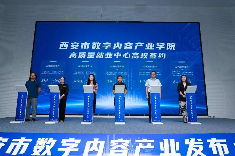 活动现场,西安市未来数字内容产业研究院西安市数字内容产业基地正式揭牌。在签约环节,研究院与陕西西咸文旅集团等四家企业签署理事单位协议,与中国移动西安分公司等两家企业签署战略合作协议;西安市数字内容产业基地与十里沣河影视传媒有限公司等五家企业签署入驻协议,研究院高质量就业中心与西安理工大学等十五所高校院所签署合作协议。艺术与设计学院院长管阳代表我校签署产教融合实训基地合作协议。