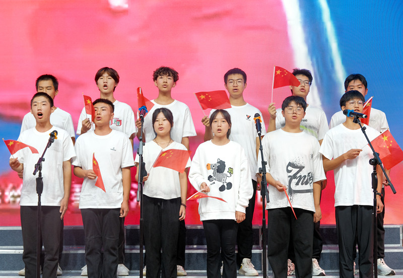 智能3241全体学生的朗诵《你要写中国》以深情的笔触描绘了祖国的壮丽山河和悠久历史。电气3245全体学生的合唱《国家》则表达了对祖国深深的依恋和热爱。电气3249全体学生的朗诵《满江红》以激昂的文字,激发了大家的爱国热情。无人机3241全体同学的合唱《我和我的祖国》将现场气氛推向了又一个高潮,表达了大家与祖国紧密相连的心声。接着,无人机3242全体学生的朗诵《这盛世如你所愿》以深情的语言,表达了对祖国繁荣昌盛的美好祝愿。最后在舞蹈串烧《民族融合一家亲》以及歌曲《明天会更好》中本次活动圆满落幕,整个活动过程中,观众们掌声不断,气氛热烈。