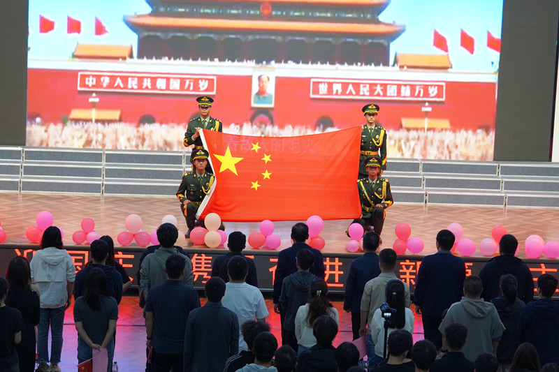 为了庆祝新中国成立75周年,弘扬爱国主义精神,激发师生们的爱国热情。2024年9月29日晚上19:30,人工智能学院党总支在博远楼小剧场组织开展了“红心向党迎国庆,携手奋进谱新篇”为主题的喜迎新中国成立75周年特色主题党日活动。校党委副书记杨聪、人工智能学院党总支书记张双琦、招就处、保卫处、人工智能学院全体教工党员以及2024级全体学生出席本次活动。