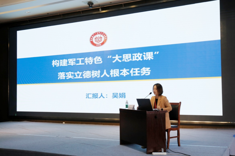 在 “大思政课”建设成果展示交流环节,省内六所高职院校就“大思政课”建设成果和经验总结作了分享。我校马克思主义学院院长吴娟聚焦构建军工特色“大思政课”、落实立德树人根本任务,从加强顶层设计、建强“大师资”、建好“大课堂”和建优“大平台”四个方面着手,详细介绍了我校军工特色“大思政课”建设的典型做法、建设成果和经验总结。