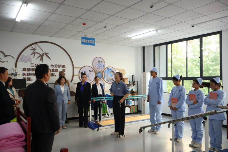 活动期间,会议嘉宾共同参观交流教学院部室建设情况,智慧健康养老服务与管理专业带头人谈笑与职教中心主任深度交流。