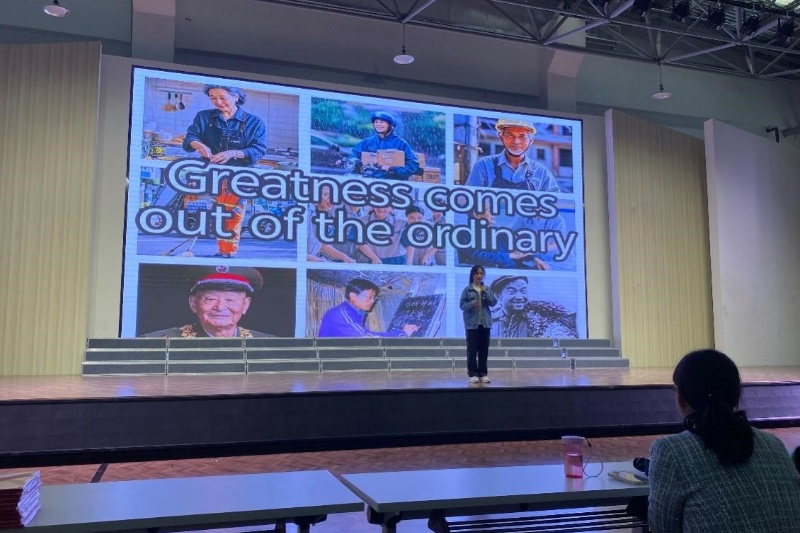 在定题演讲环节,主题“Greatness Comes out of the Ordinary”激发了参赛选手们的无限热情。选手们紧扣主题,用流畅的英语讲述着平凡中的伟大。有的从生活小事说起,有的以名人事迹为例,展现出学生们深刻的理解和优秀的语言组织能力。学生们清晰的发音、自信的神态,使得每一个观点都如同一颗颗种子,深深植入观众的心田,引发共鸣。
