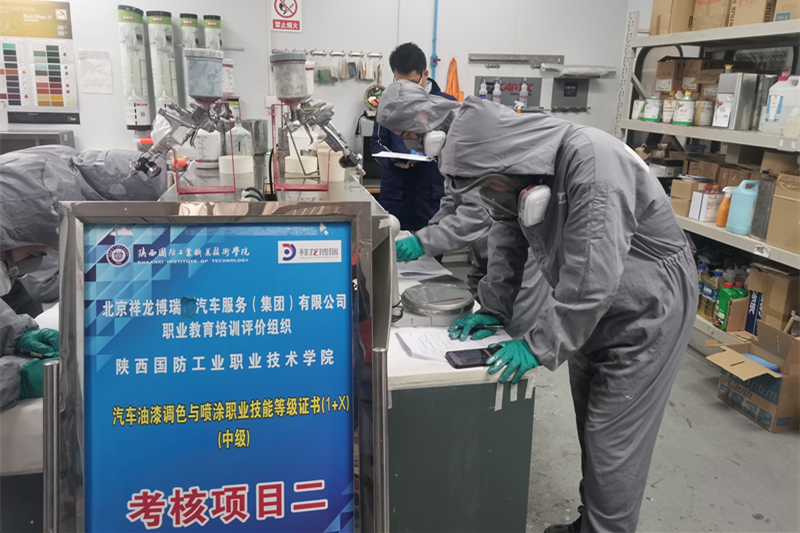 2024年11月14日,汽车工程学院与汽车油漆调色与喷涂职业技能等级证书的考核评价组织北京祥龙博瑞汽车服务(集团)有限公司共同完成该项目的考核任务,巴斯夫涂装项目组成员王鹏利、张俊红、周弦及汽车运用与维修教研室主任权春锋参与考核及督考任务。