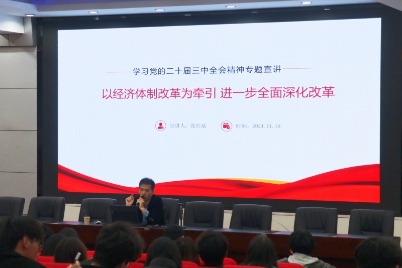 为深入学习贯彻党的二十届三中全会精神,深刻领会习近平总书记关于进一步全面深化改革的一系列新思想、新观点、新论断,11月19日下午,第十期“青马工程”培训班在北校区教二报告厅举办学习贯彻党的二十届三中全会精神专题讲座。