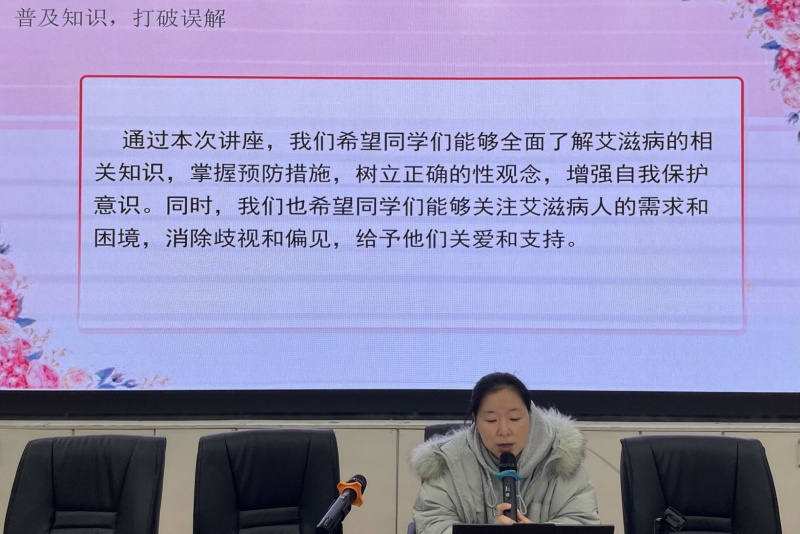 讲座伊始,学生科长闫博通过深入浅出的讲解风格,瞬间抓住同学们的注意力。通过一组触目惊心的数据,直观展现出艾滋病在全球尤其是青年群体中的蔓延态势,强调大学生作为社会未来栋梁、活跃的社交群体,已然身处防艾前沿阵地,提高防艾意识刻不容缓。