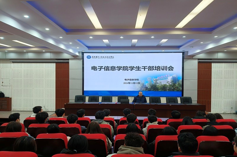 为提升学生干部综合素质与工作能力,加强学生干部队伍建设,电子信息学院于2024年12月11日开展了全院学生干部培训会。学院党总支书记赵鹏出席会议并对学生干部队伍建设进行指导,学院各班班长、团支书、学院学生会成员积极参与。