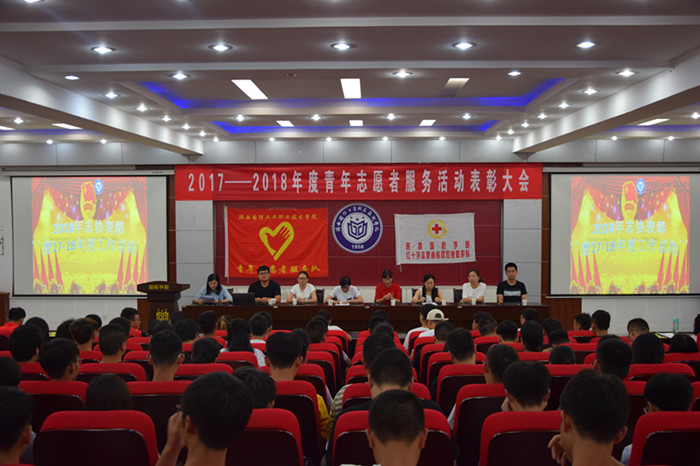2018年6月20日下午16时50分,2017—2018年度青年志愿者服务活动表彰大会在我校北区教二报告厅举行。院团委书记易楠、青年志愿者协会指导老师郭娟、校园红十字救护队指导老师杨柳以及各分院团总支书记参加了本次表彰大会。对工作成绩突出的1个标兵团体、3个先进集体,6个优秀志愿服务单项,131名先进个人给予了表彰奖励。