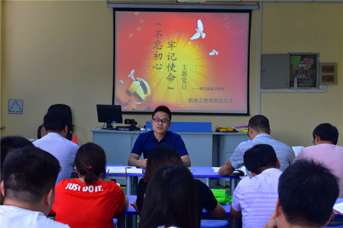 为深入学习和贯彻落实习近平新时代中国特色社会主义思想,培育和践行社会主义核心价值观,机电工程学院于2018年5月31日在8-207开展“不忘初心、牢记使命”主题教育活动——学习梁家河精神,机电工程学院全体教师党员和学生党员参加了此次学习活动,此次活动由机电工程学院党总支书记殷兴光教授主持。