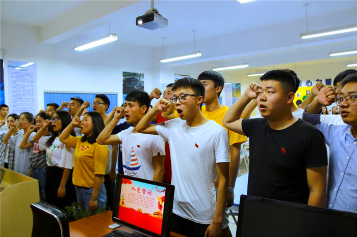 在此之前,计算机与软件学院学生党支部也积极组织分院学生党员进行入党宣誓仪式,通过仪式教育号召学生党员践行入党誓词,到场老党员重温入党誓词;宣誓仪式结束后组织学生党员进行政治理论学习,学习纪念马克思诞辰200周年的系列视频。计算机与软件学院党总支书记张弛向新党员们表示祝贺,并以一名老党员的身份对他们表示欢迎,希望新党员们能通过经常性的政治理论学习不断增强自身的政治理论水平,自觉维护党员形象,时刻用党员的标准要求自己,不忘初心,牢记习近平对于青年人的嘱托,在新时代做出大成绩。