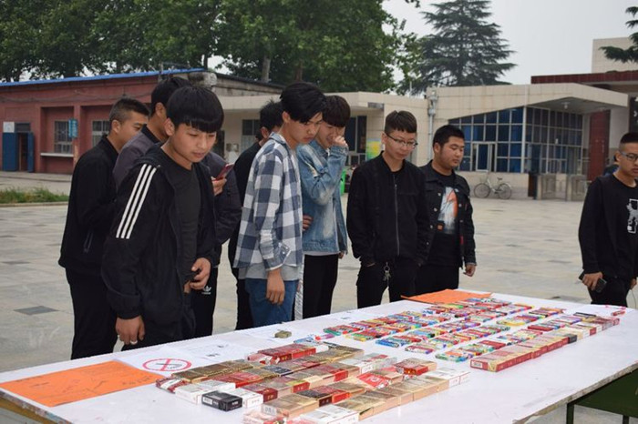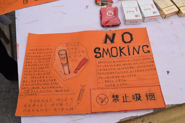 同学们纷纷留言,抵制抽烟行为,借此机会呼吁更多的同学对烟草说NO。活动现场还组织了烟具的展示,将学生会同学在公寓查宿时查到的烟、打火机进行了现场展示。为了加大无烟校园的宣传力度,现场还有同学向广大学生发放无烟宣传单页。对于同学们的抽烟行为,老师严厉处置,不断督促吸烟同学要改掉抽烟的习惯。对于有抽烟习惯的同学,老师们也是恨铁不成钢。为了同学们能够拥有一个健康的身体和舒适的学习环境,基础课部的辅导员老师也参与到了此次活动中,和同学们并肩作战。活动现场还有一部分学生为了抵制抽烟行为,特意做了手抄报,起到了警示作用。每一个留言就是一份力量,希望更多的力量汇聚到一起来抵制校园抽烟行为。让我们时刻谨记:吞咽等于慢性自杀,吐烟等于谋财害命。