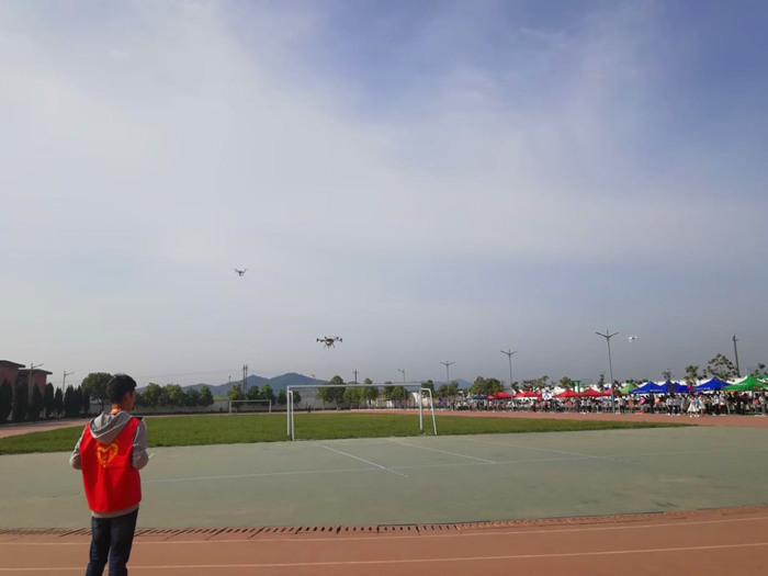 4月27日上午,我院航模队为洋县二中运动会的开幕式进行了精彩的航拍及航模展示活动。